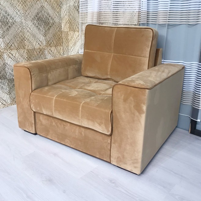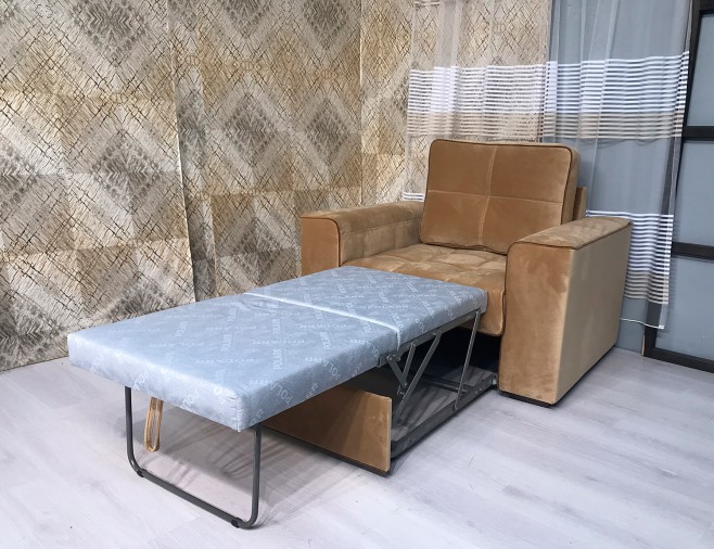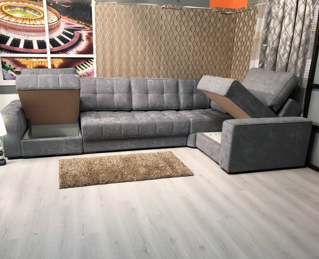 В интерьере преобладают прямые линии и геометрические формы, что придаёт ему современный вид. Мебель выполнена из дерева и имеет простые и лаконичные формы. В гостиной установлен большой диван и журнальный столик, а также телевизор, закреплённый на стене. В спальне расположена кровать с мягким изголовьем и тумбочки по бокам. Кухня оборудована современной техникой и имеет барную стойку, которая служит дополнительным местом для приёма пищи.